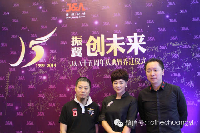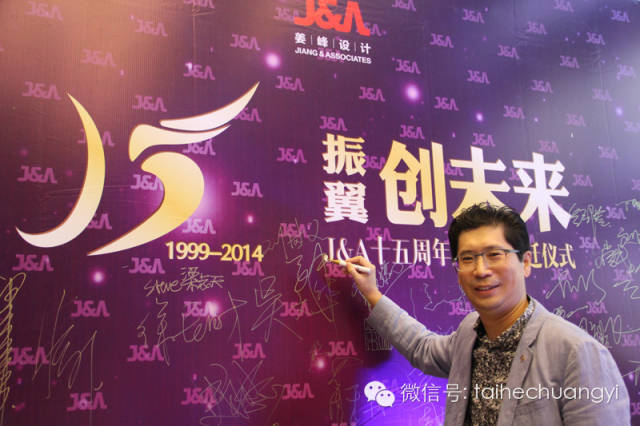 J&A姜峰设计的总经理、总设计师姜峰先生在晚宴现场,更对泰禾团队称赞不已。本次J&A设计十五周年庆典恰逢J&A办公地址乔迁,可谓是双喜临门,影响力巨大!得到中国室内设计行业行业的高度关注!众多中国室内设计的专家、高校学者、知名地产商代表以及媒体代表都莅临现场参与本次盛典。
