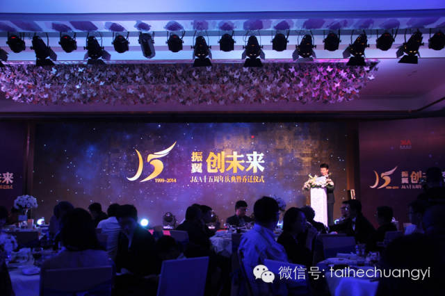 在晚上6点开始举办的“振翼·创未来”J&A姜峰设计十五周年庆典活动现场:唯美的宴会现场布置,高端大气的舞台灯光,以及音效效果绝佳的音响效果,更是让现场来宾感到宾至如归,欢声笑语不断。高潮迭起的活动进程、精彩的节目编排更是让现场掌声不断,笑声不断。而泰禾为J&A拍摄的企业宣传片、微电影更是将现场气氛推向了高潮!高端大气的企业宣传片让很多观众都表示有一种看大片的感觉!而情感细腻、温馨动人的微电影让很多嘉宾情不自禁的鼓掌,让人感受到了J&A企业文化的丰富内涵及魅力!